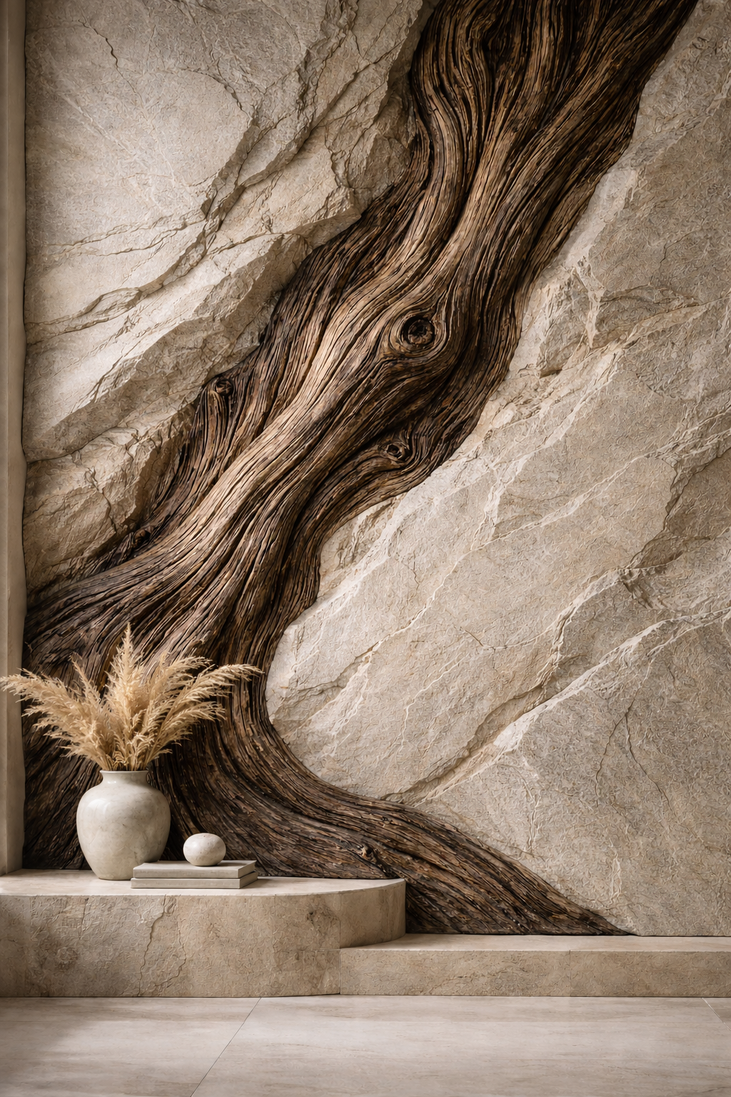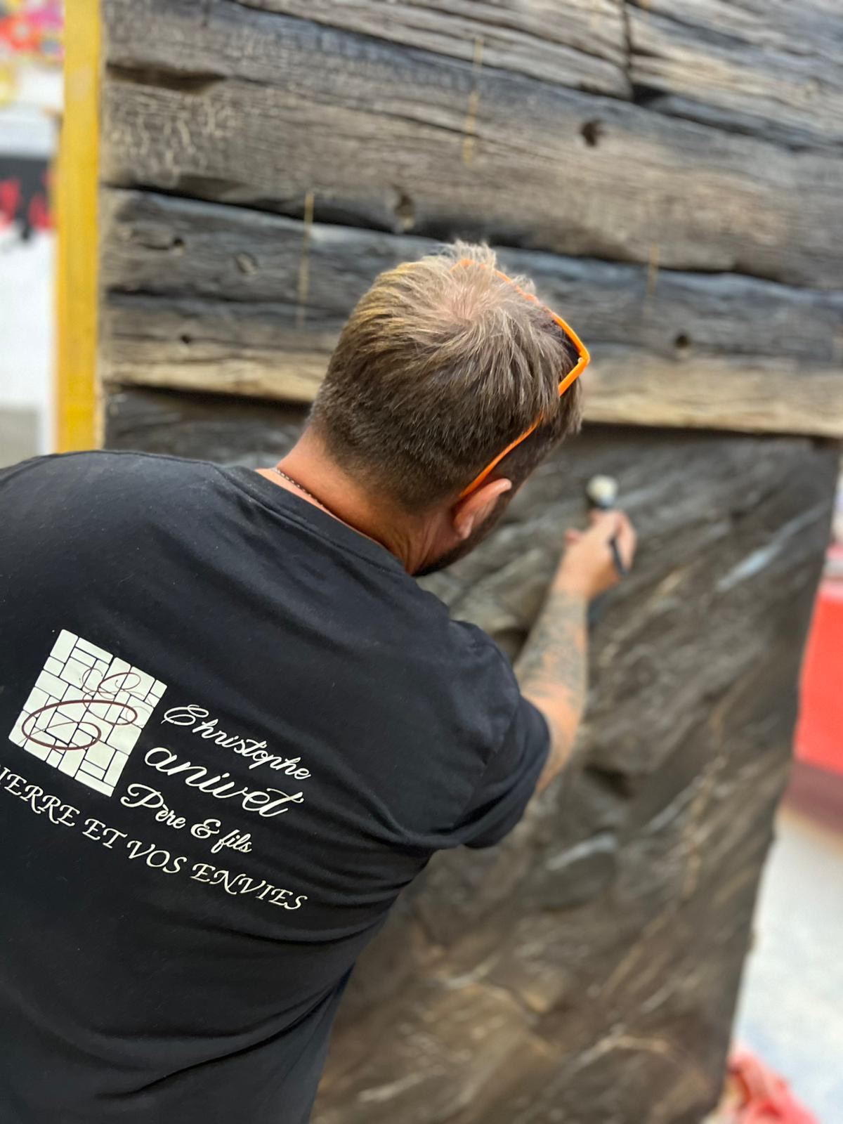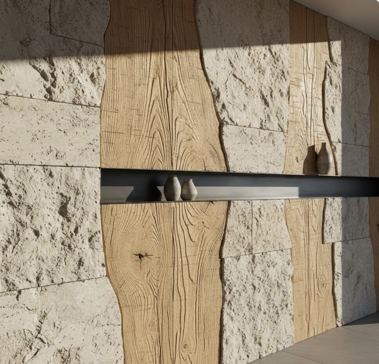 Sculté à main levée dans l'enduit, chaque décor bois prend forme à travers des veines profondes, des noeuds marqués et des reliefs travaillés.Teinté dans la masse et en surface , il offre un rendu naturel,vivant et résolument haut de gamme, fidèle à l'authenticité du bois.
